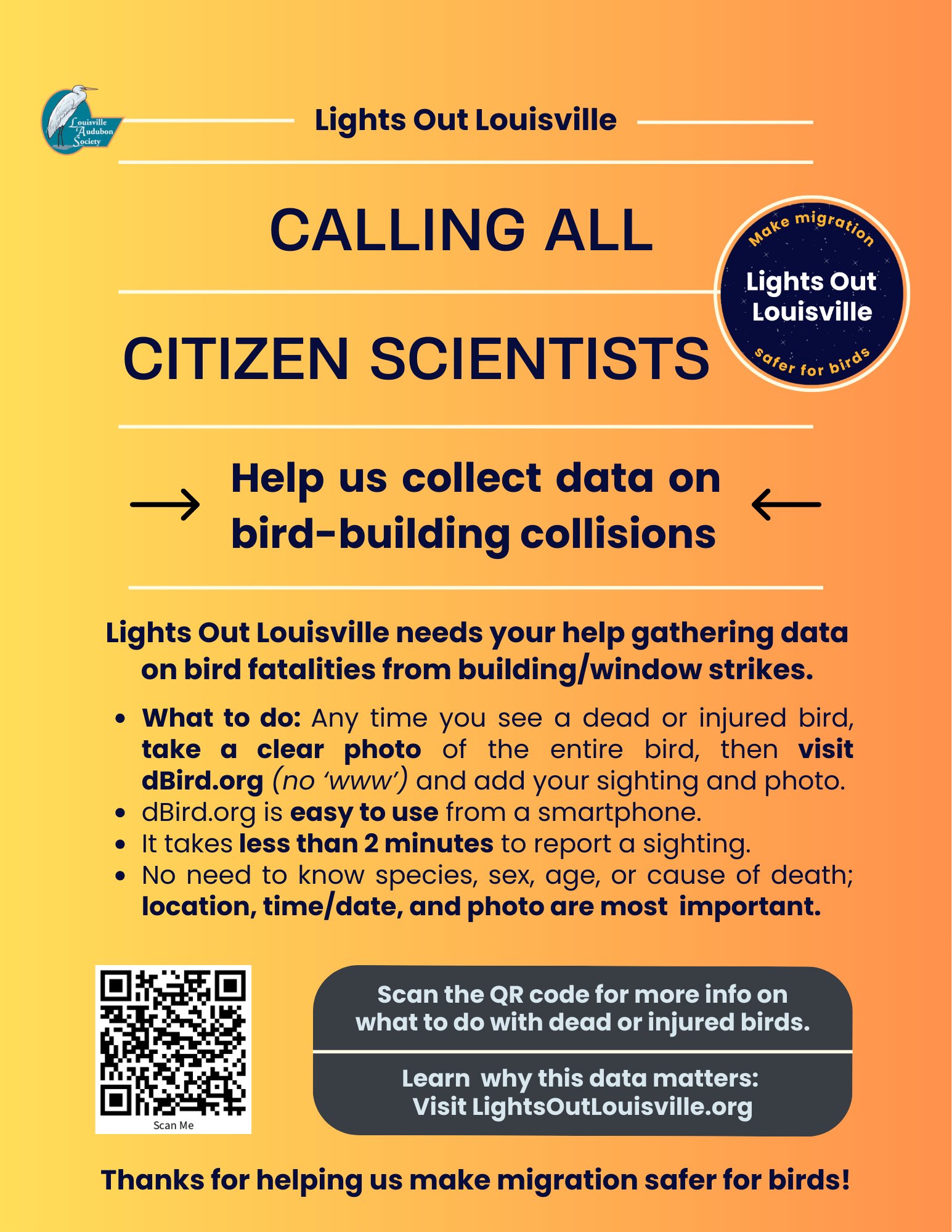 If you joined us for “dBird Days” in fall 2026, thank you! We’ll be hosting these events again in spring 2026. All are welcome attend and volunteer.